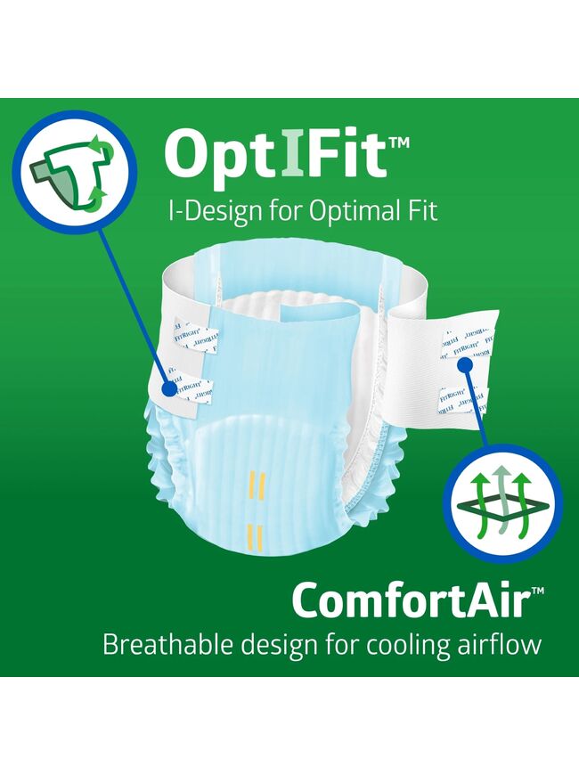 FitRight OptiFit Briefs, Ultra Absorbent, Disposable Adult Briefs with Tabs, Large, 44"-56", 20 Count