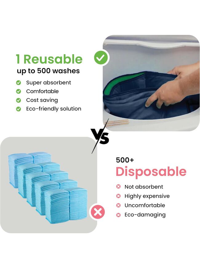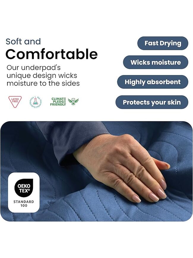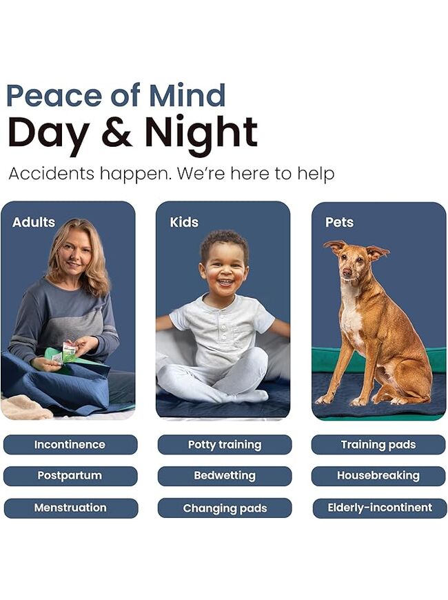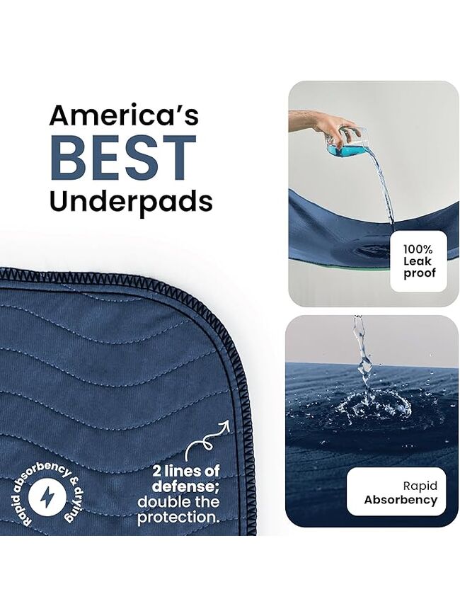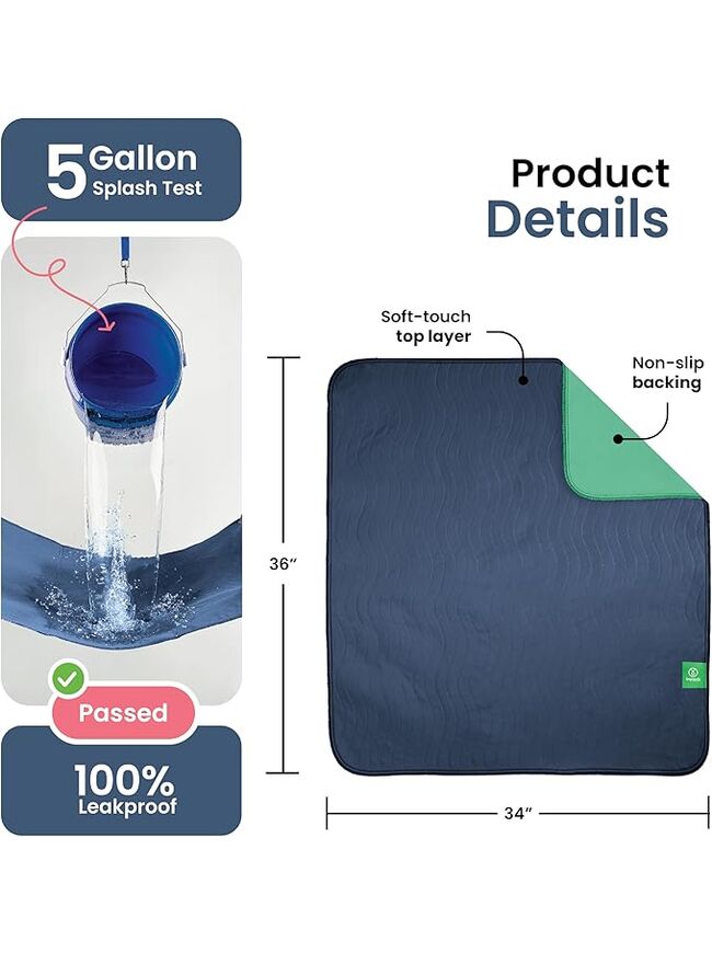 IMPROVIA® Washable Underpads 34" x 36" Pack of 4 Heavy Absorbency Reusable Bedwetting Incontinence Pads for Adults, Kids, & Pets - Waterproof Protective Pad for Bed, Couch, Sofa, Floor (Navy & Green)
