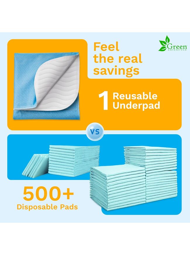 GREEN LIFESTYLE Washable Underpads - Large Bed Pads for use as Incontinence Bed Pads, Reusable Pet Pads, Great for Dogs, Cats, Bunny, Seniors Bed Pad (Pack of 4 - 30x34)