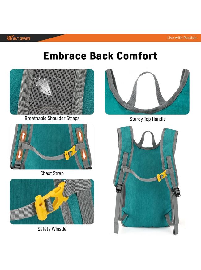 SKYSPER 15L Foldable Hiking Backpack Lightweight Packable Travel Daypack with Chest Strap Small Folding Pack for Walking