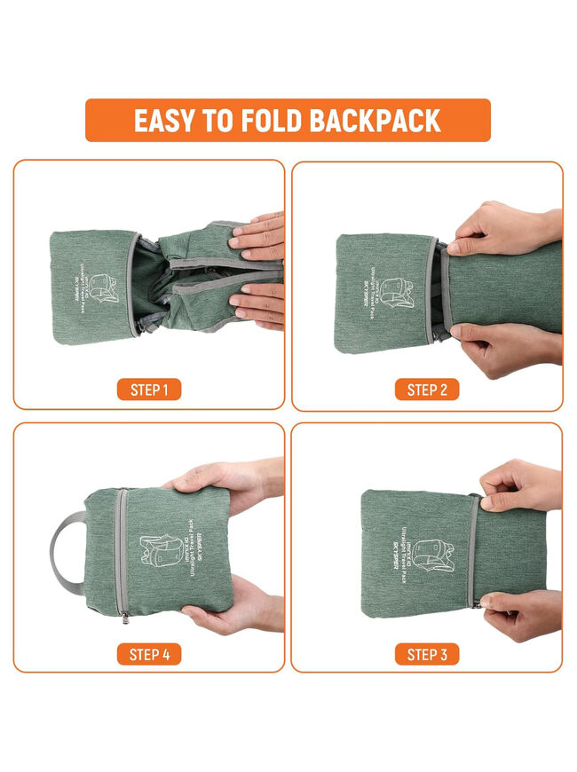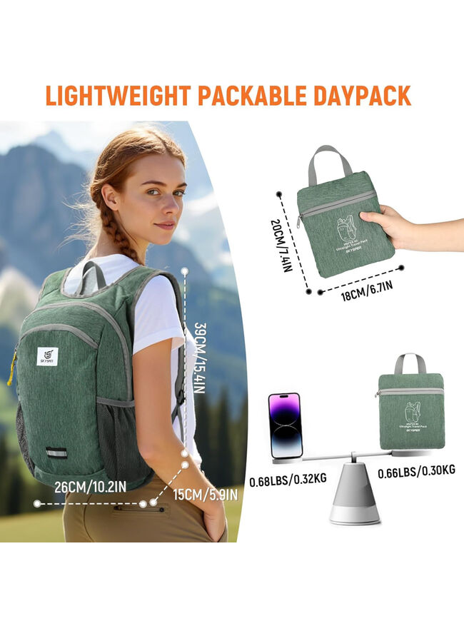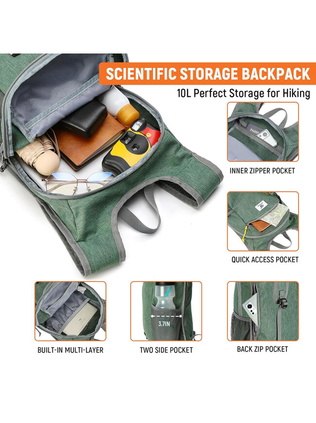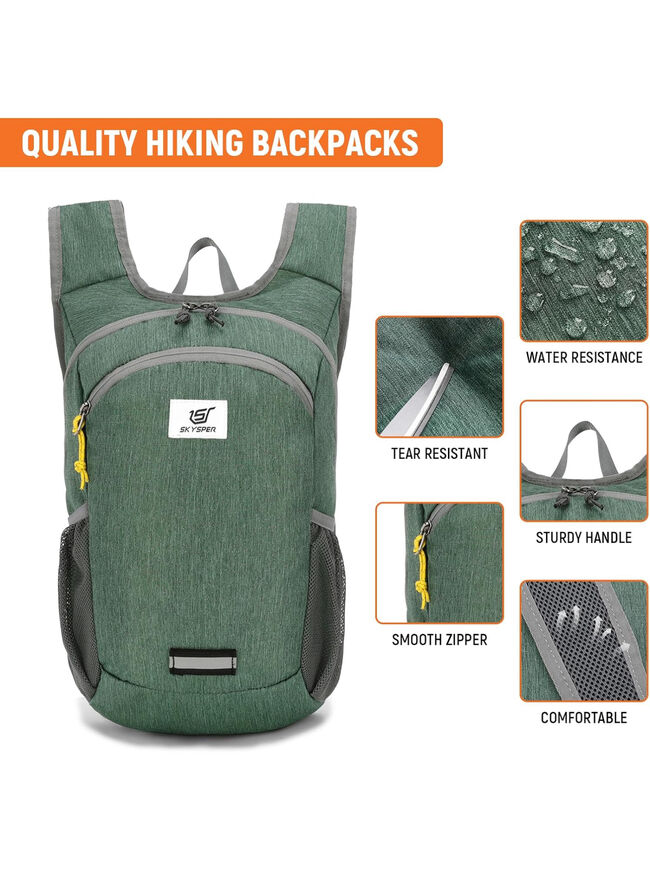 SKYSPER 10L Hiking Backpack, Foldable & Packable Lightweight Daypack for Travel, Collapsible Small Compact Hiking Backpack for Women & Men, Green