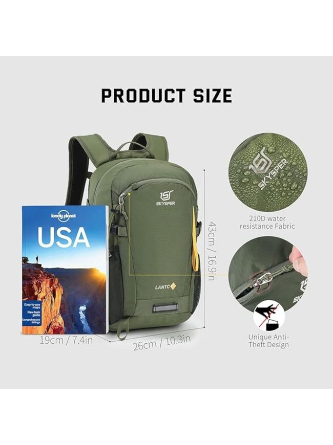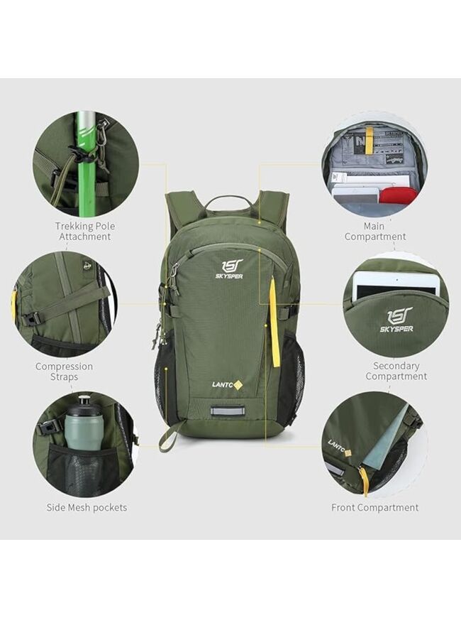 SKYSPER Small Hiking Backpack, 30L Lightweight Travel Backpacks Hiking Daypack for Women Men - Army Green