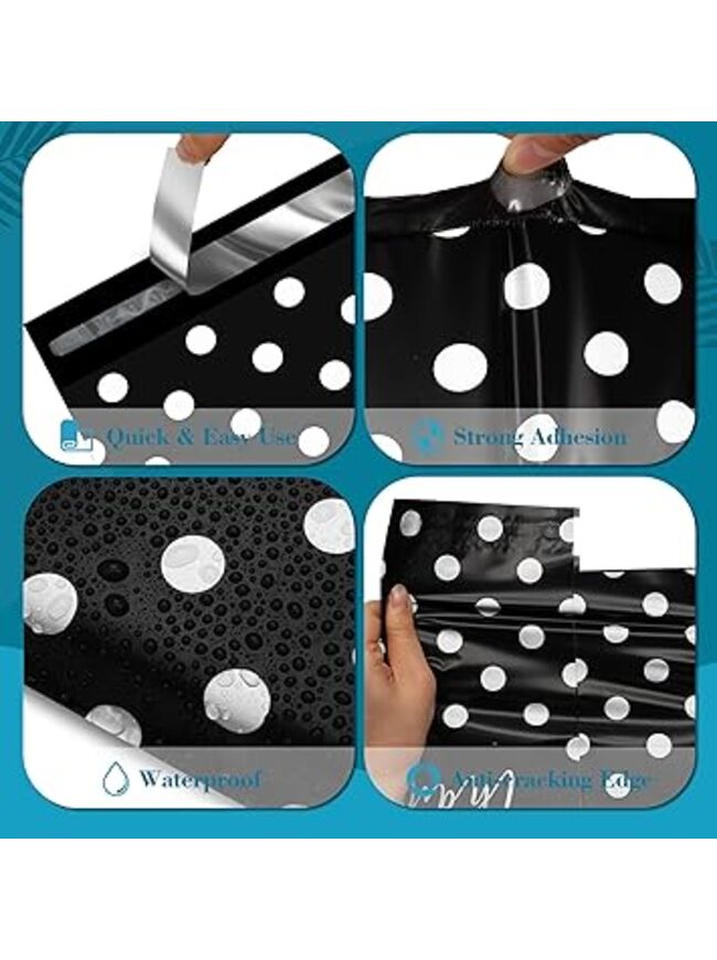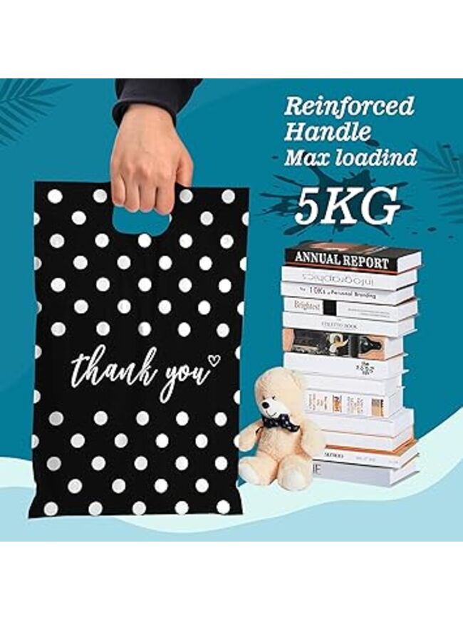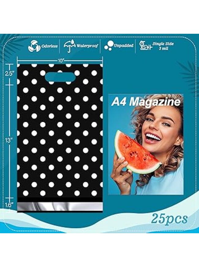 JinRuiKJ Poly Mailers with Handle 10x13 Inch 25 Pcs, Easy to Carry Packaging Bags for Small Business, Thank You Shipping Bags with Self Adhesive Strip, Tearproof and Waterproof - White Polka Dot