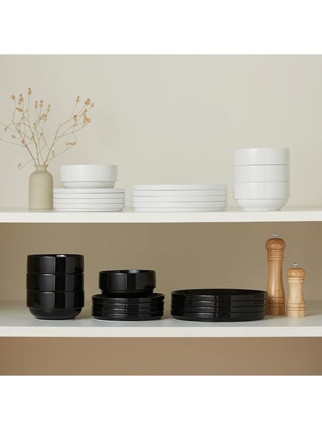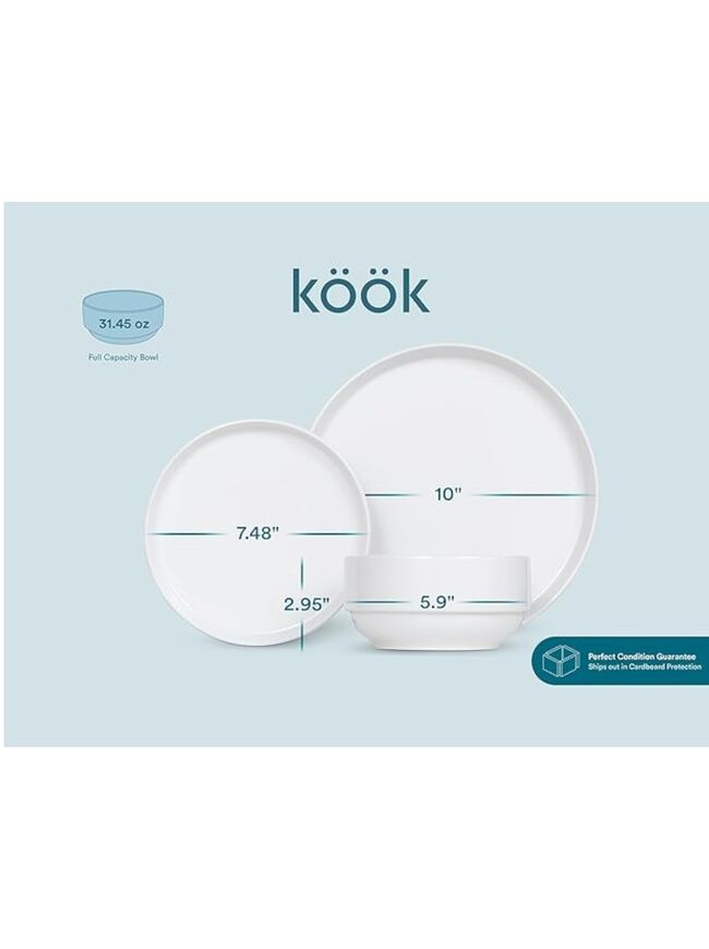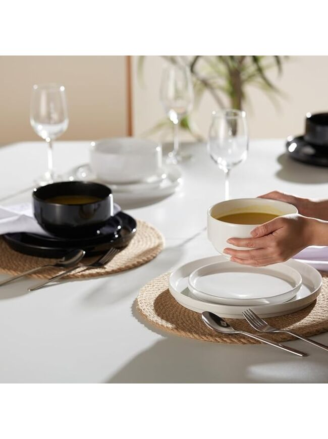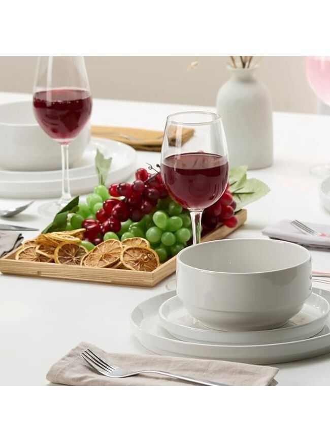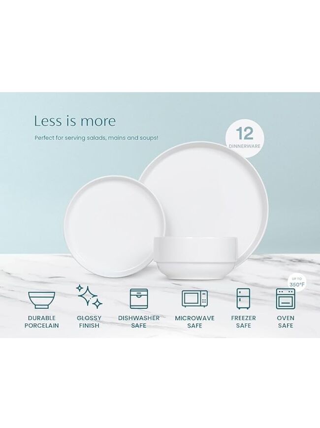 Ceramic Dinnerware Set, 12-Piece Service for 4, Soup Bowls (31.5 oz), Salad Plates (7.5"), Dinner Plates (10.5"), Round, Microwave and Dishwasher Safe, White, Cambridge Classics