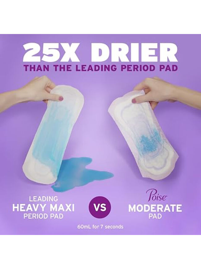 Poise Incontinence & Postpartum Pads for Bladder Leaks, 4 Drop Moderate Absorbency, Regular Length, 20 Count, Packaging May Vary