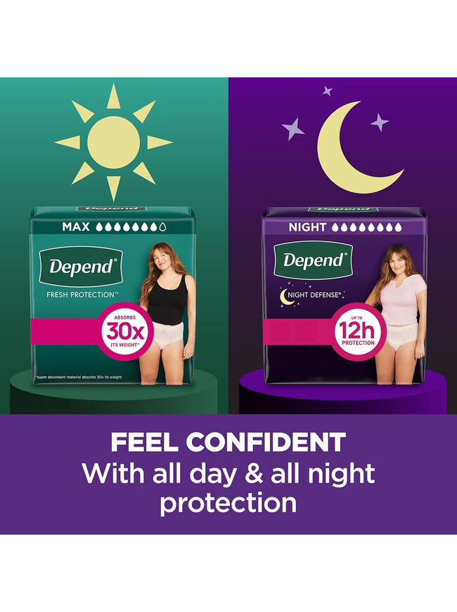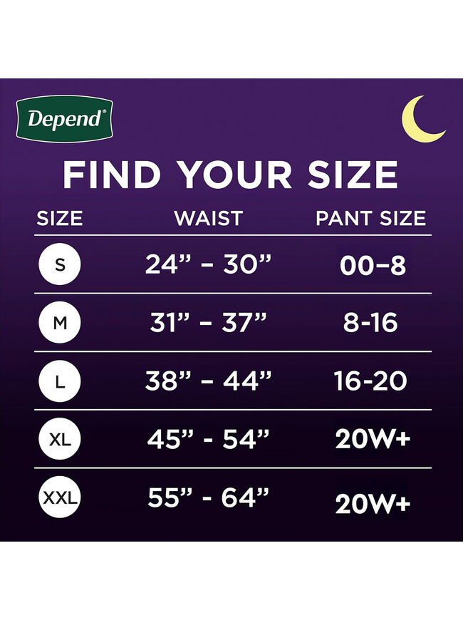 Depend Night Defense Incontinence Underwear for Women, Adult Diapers, M 15 Count