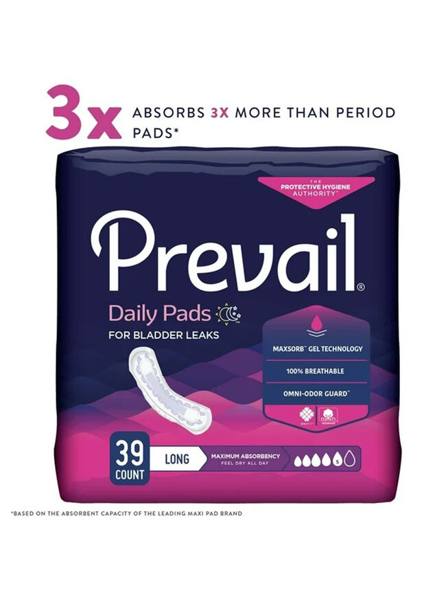 Prevail Incontinence Bladder Control Pads for Women, Maximum Absorbency, Long Length, 39 count