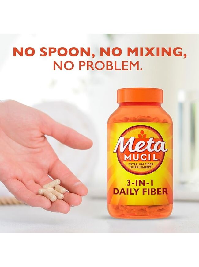 Metamucil, Psyllium Husk Capsules, 300 Capsules, 3-in-1 Fiber Supplement, Daily Psyllium Husk Fiber Capsules Help Support Digestive Health by Promoting Regularity, Help Supplement Daily Fiber Intake