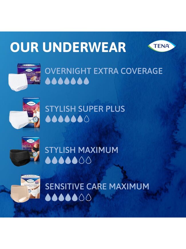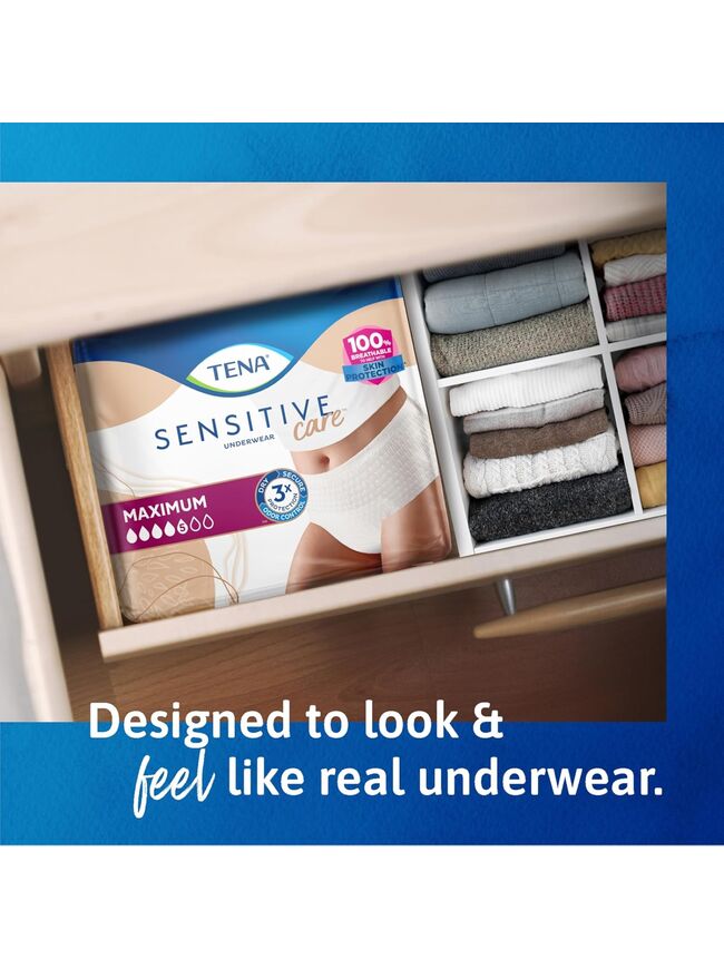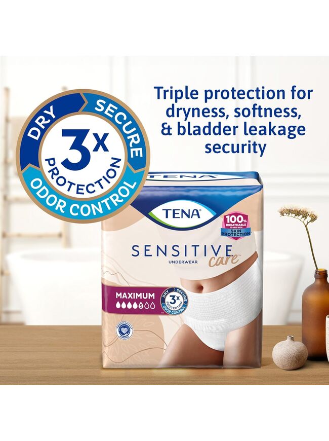 TENA Sensitive Care Adult Incontinence Underwear for Women, Maximum, Small/Medium, White, Disposable, 10 Count