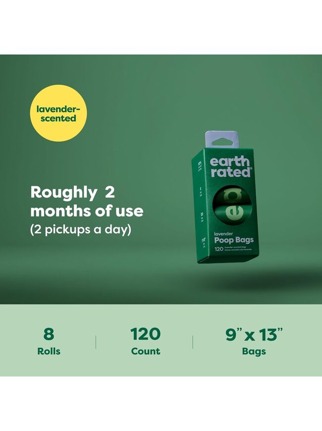 Earth Rated Poop Bags for Dogs Guaranteed Leak Proof and Extra Thick Waste Bag Refill Rolls, Lavender Scented, 120 Count